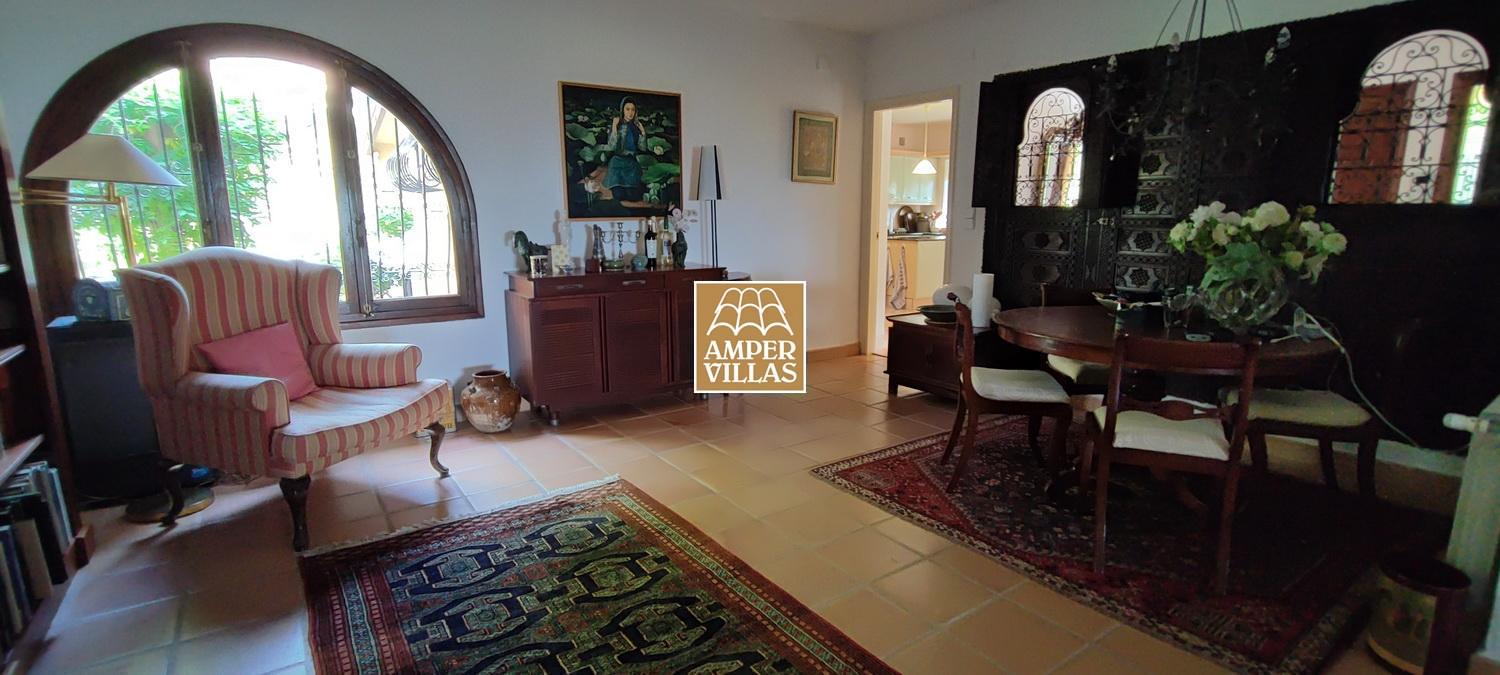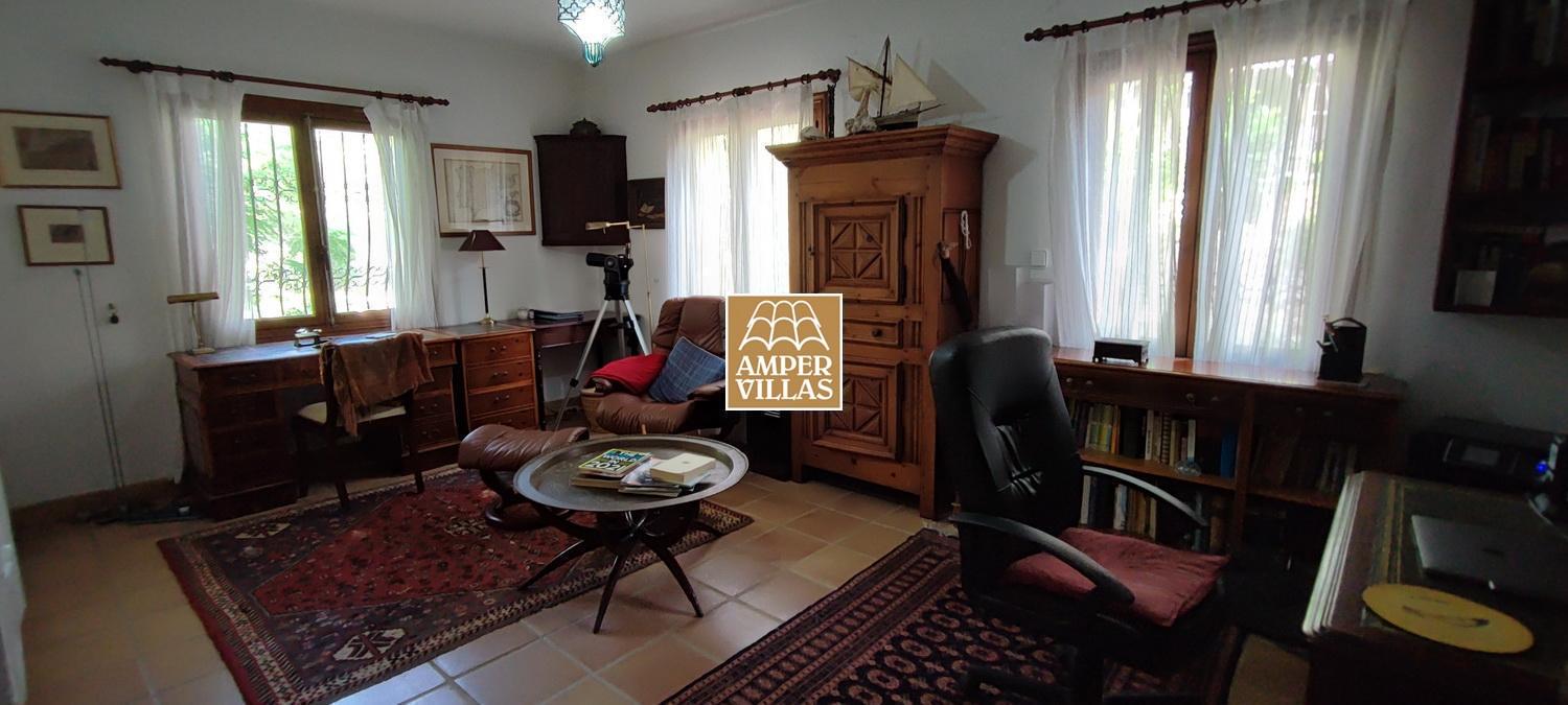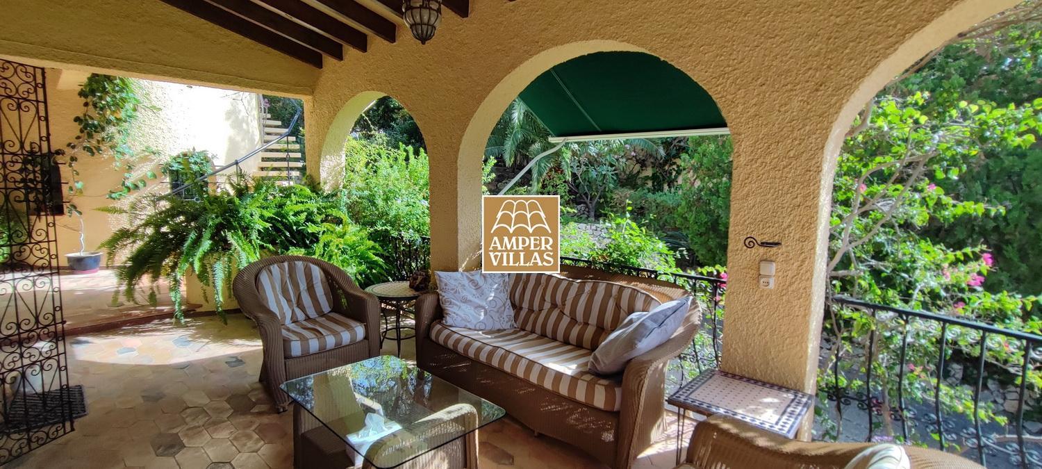 Beautiful Mediterranean villa in the best location of Sierra Altea Golf, with a large plot and an exceptional garden. The distribution is as follows: entrance, large living room with fireplace leading to a beautiful covered terrace, dining room and large kitchen with dining area, 2 bedrooms and 2 bathrooms, one of which is en-suite. On the interior level there is an independent guest apartment with a living-dining room with an open-plan kitchen, 2 bedrooms each with its own bathroom en-suite and access to a terrace where the outdoor kitchen and the pool, surrounded by terraces, are located. On the upper level there is an independent studio with a american kitchen and bathroom and a beautiful terrace with spectacular views of the Bay of Altea and the mountains. Garage and carport, storage room, central heating, south orientation and a lot of privacy.