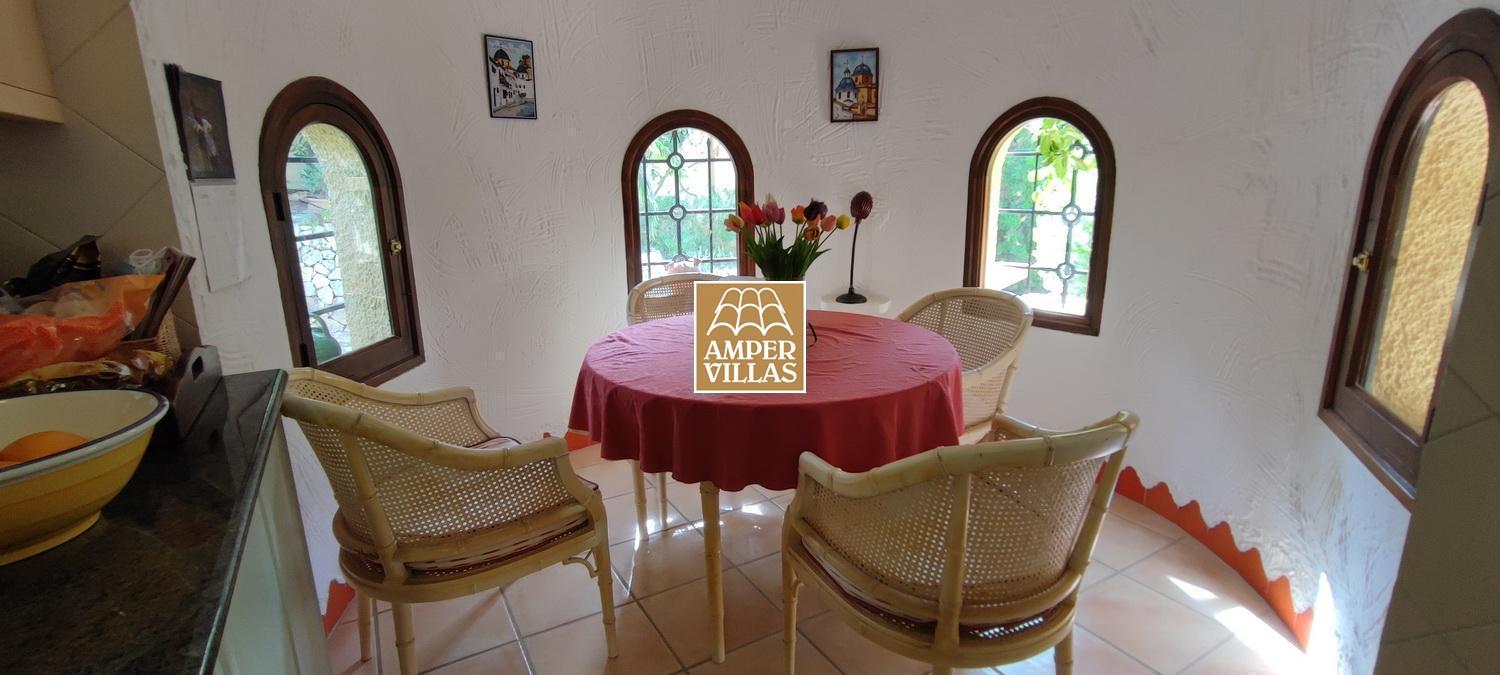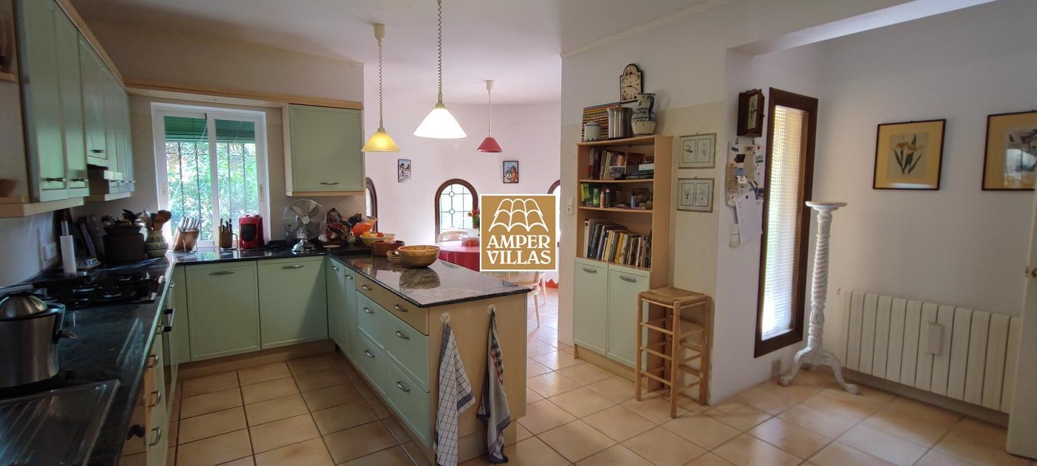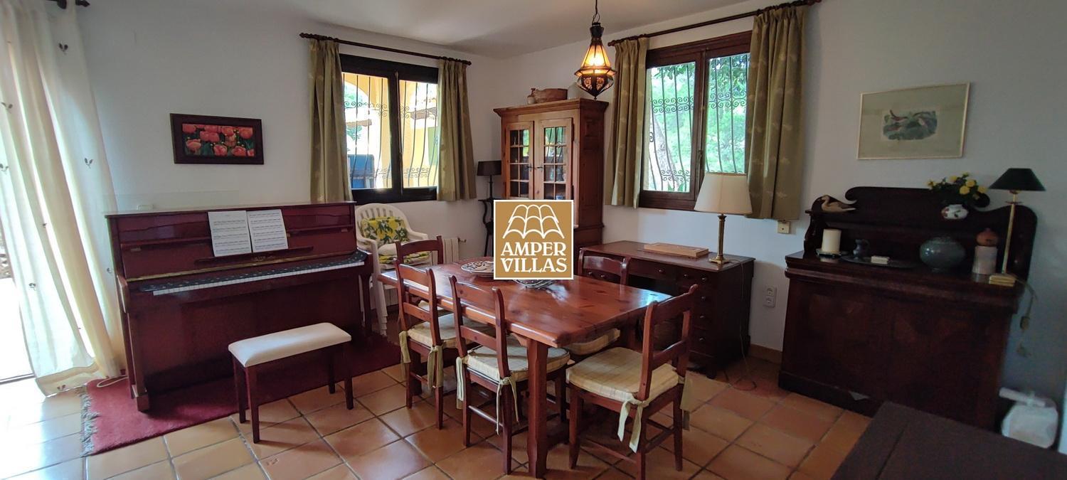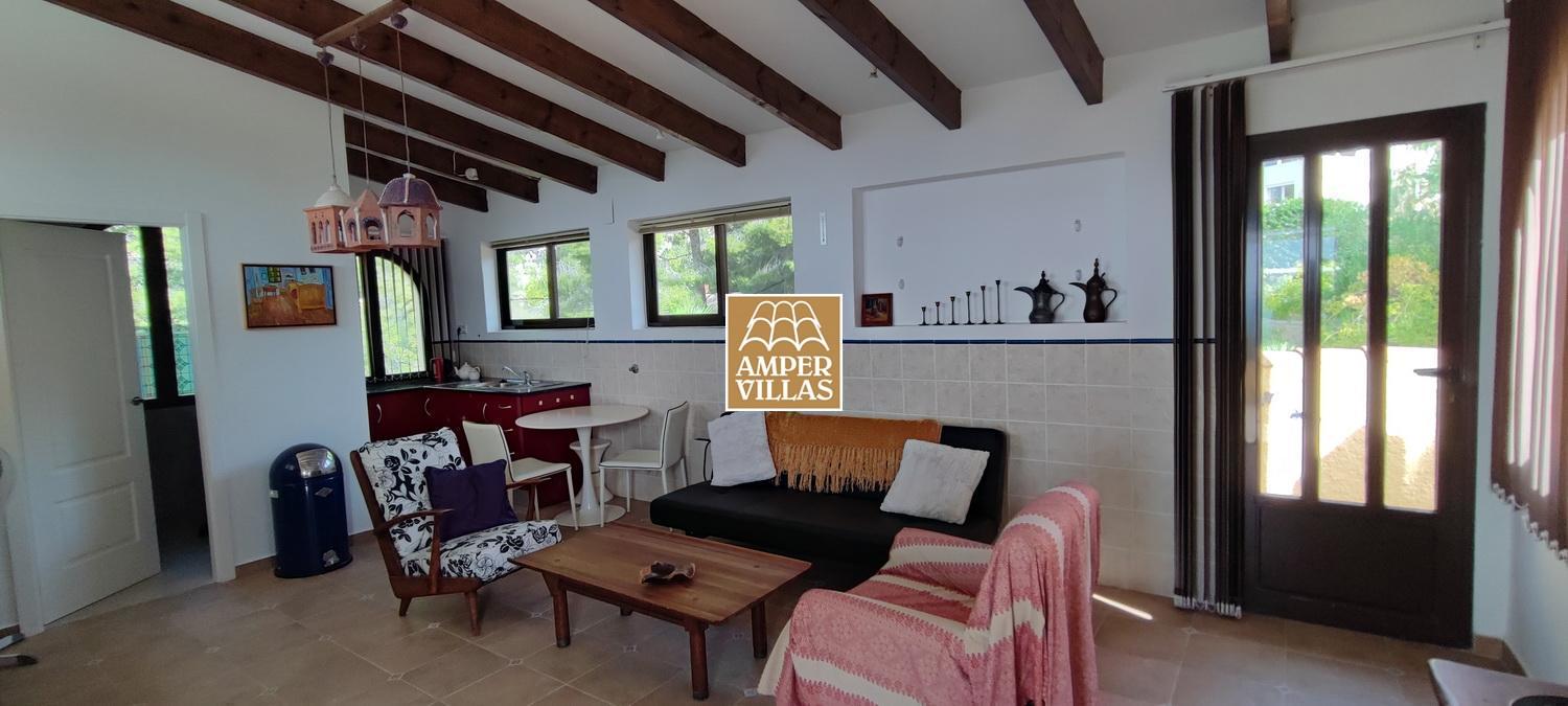 Beautiful Mediterranean villa in the best location of Sierra Altea Golf, with a large plot and an exceptional garden. The distribution is as follows: entrance, large living room with fireplace leading to a beautiful covered terrace, dining room and large kitchen with dining area, 2 bedrooms and 2 bathrooms, one of which is en-suite. On the interior level there is an independent guest apartment with a living-dining room with an open-plan kitchen, 2 bedrooms each with its own bathroom en-suite and access to a terrace where the outdoor kitchen and the pool, surrounded by terraces, are located. On the upper level there is an independent studio with a american kitchen and bathroom and a beautiful terrace with spectacular views of the Bay of Altea and the mountains. Garage and carport, storage room, central heating, south orientation and a lot of privacy.