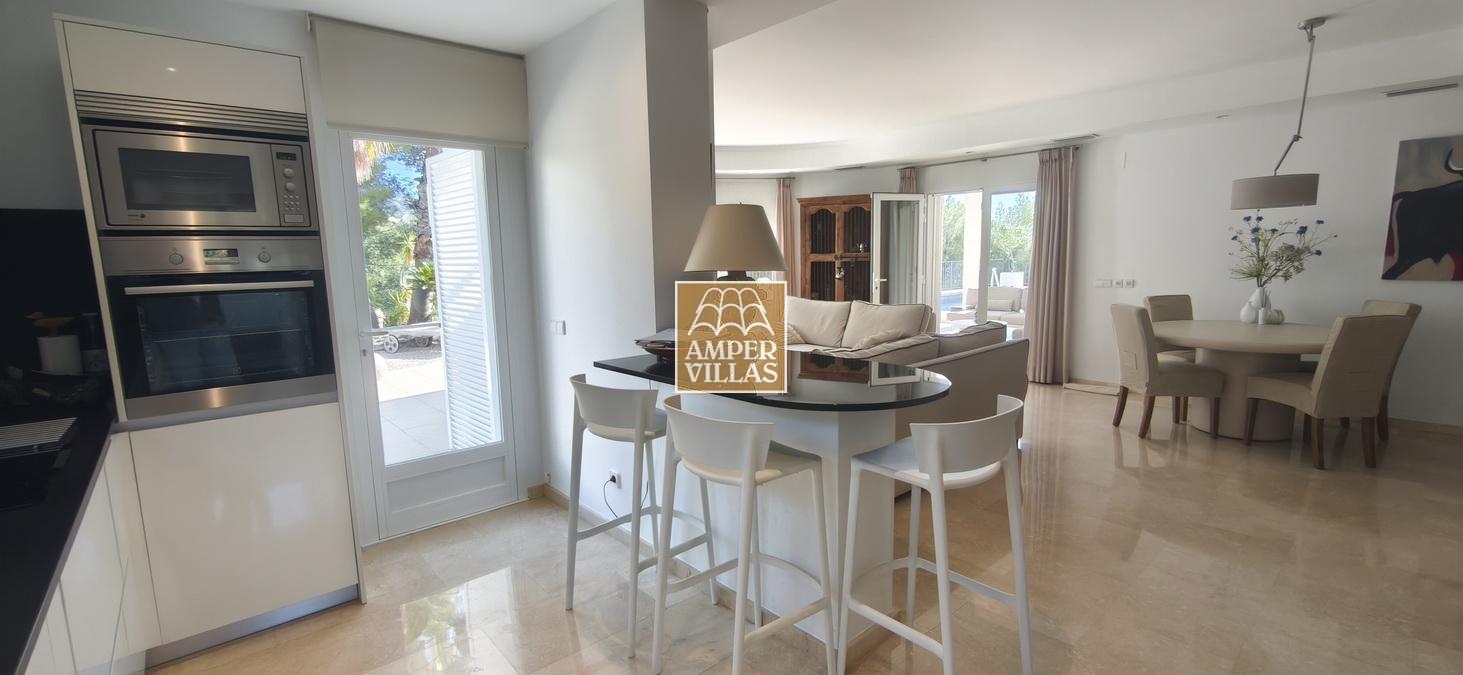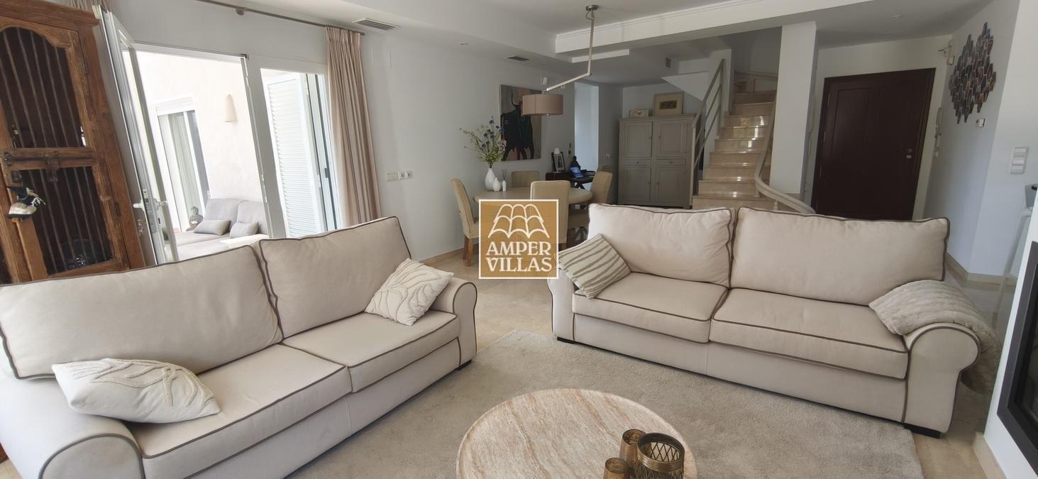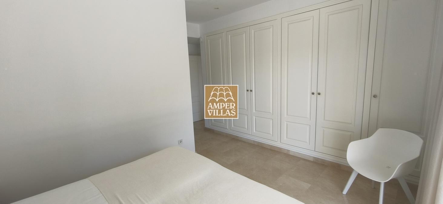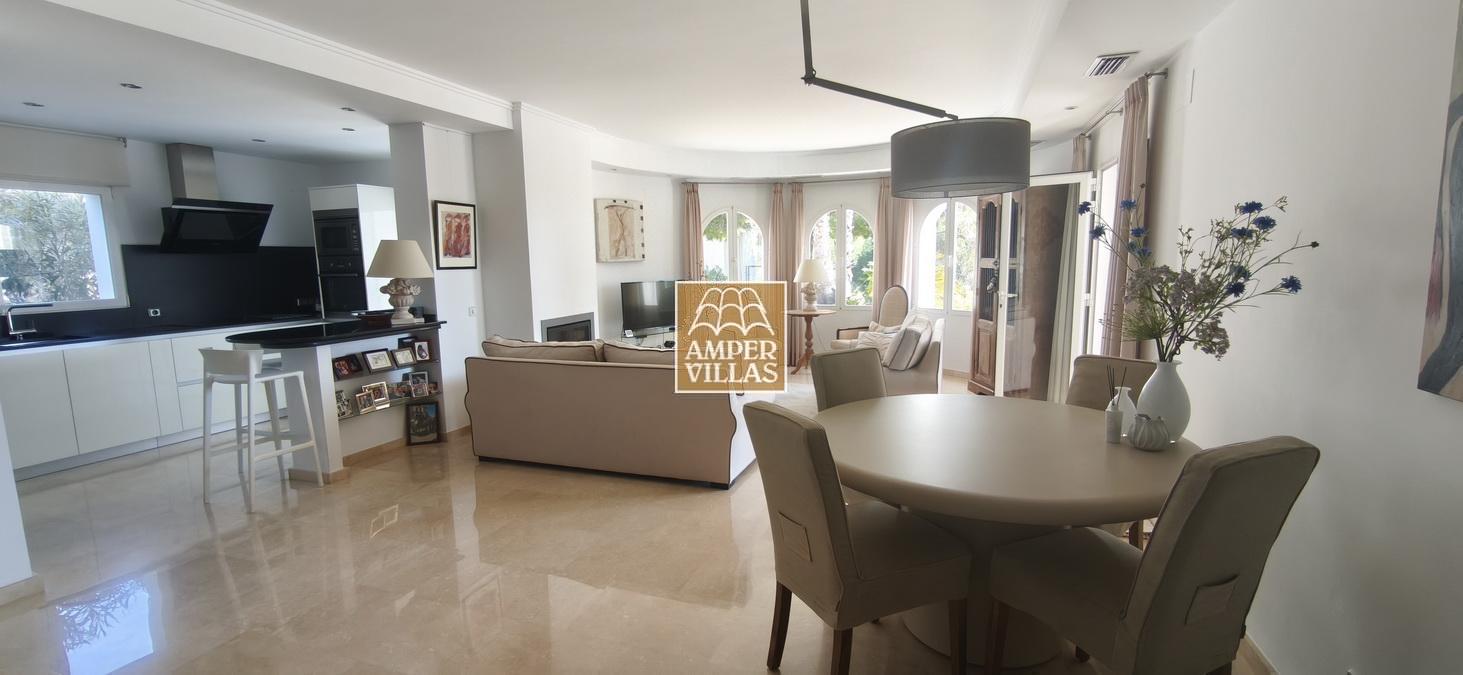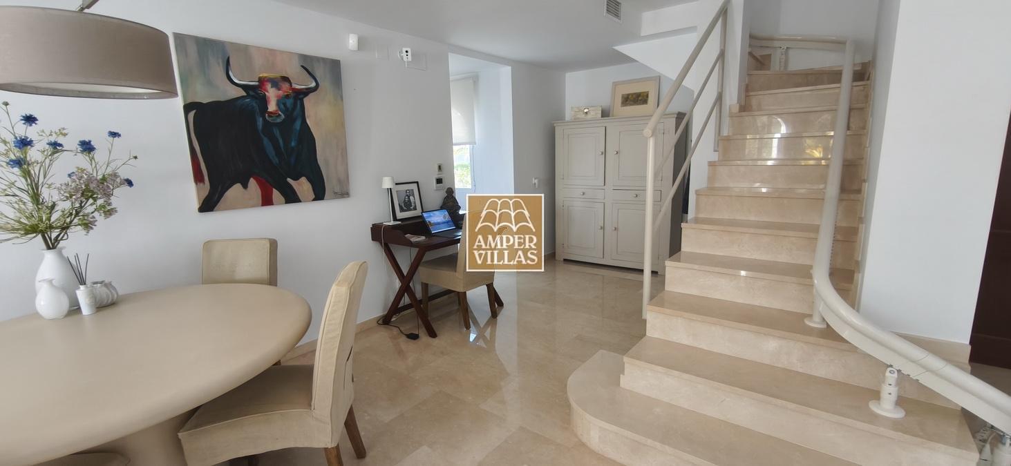 On the lower floor there is another bedroom with its own en-suite bathroom and direct access to the garden, a large garage and a storage room. The house has all the amenities, such as: underfloor heating, air conditioning, tilt and turn windows, mosquito nets, electric shutters, water softener system.