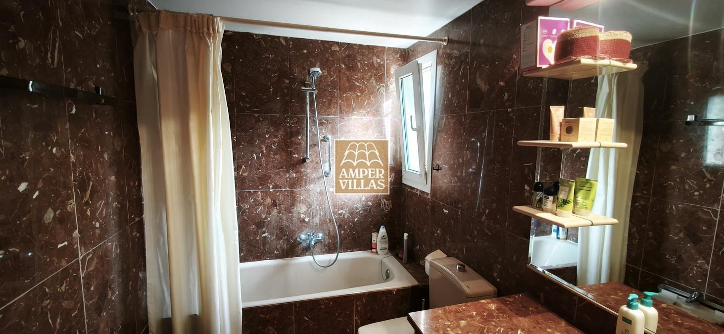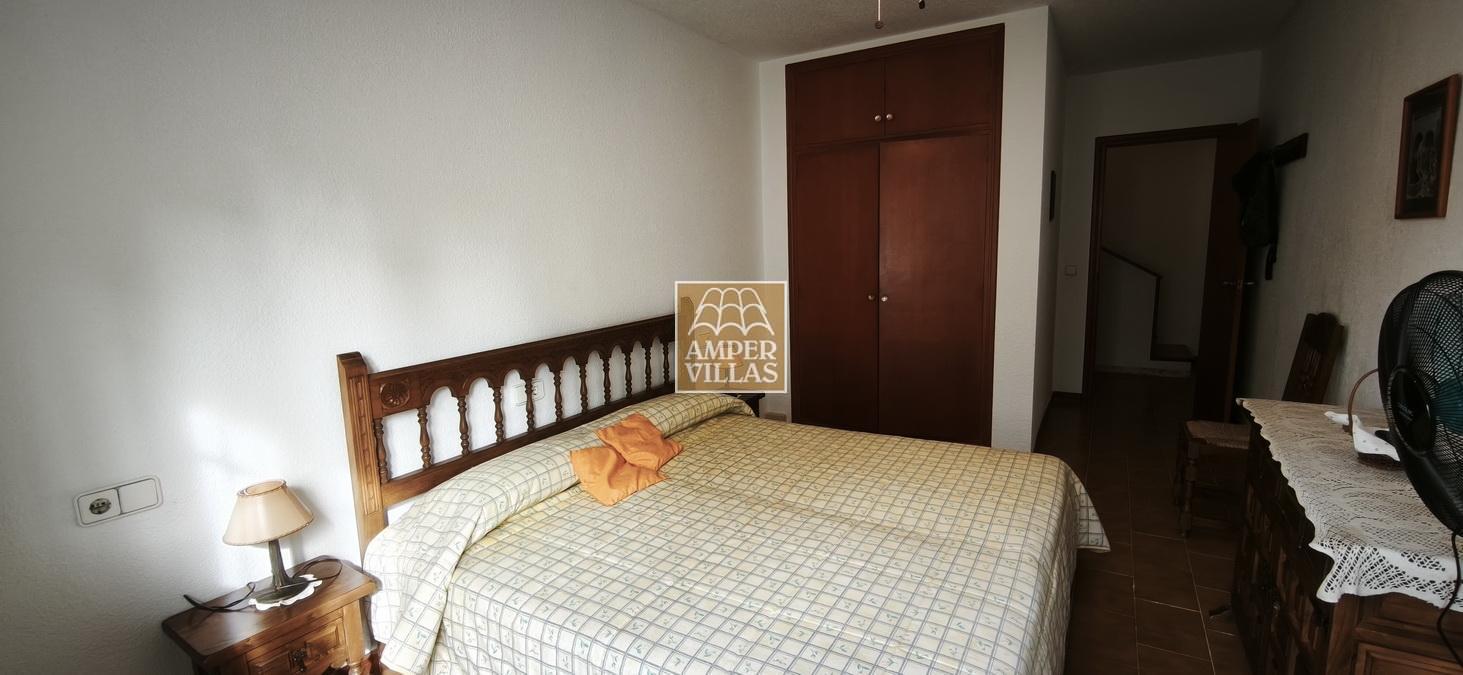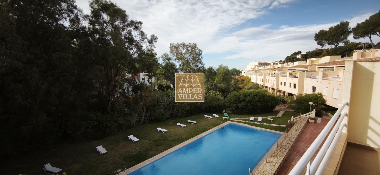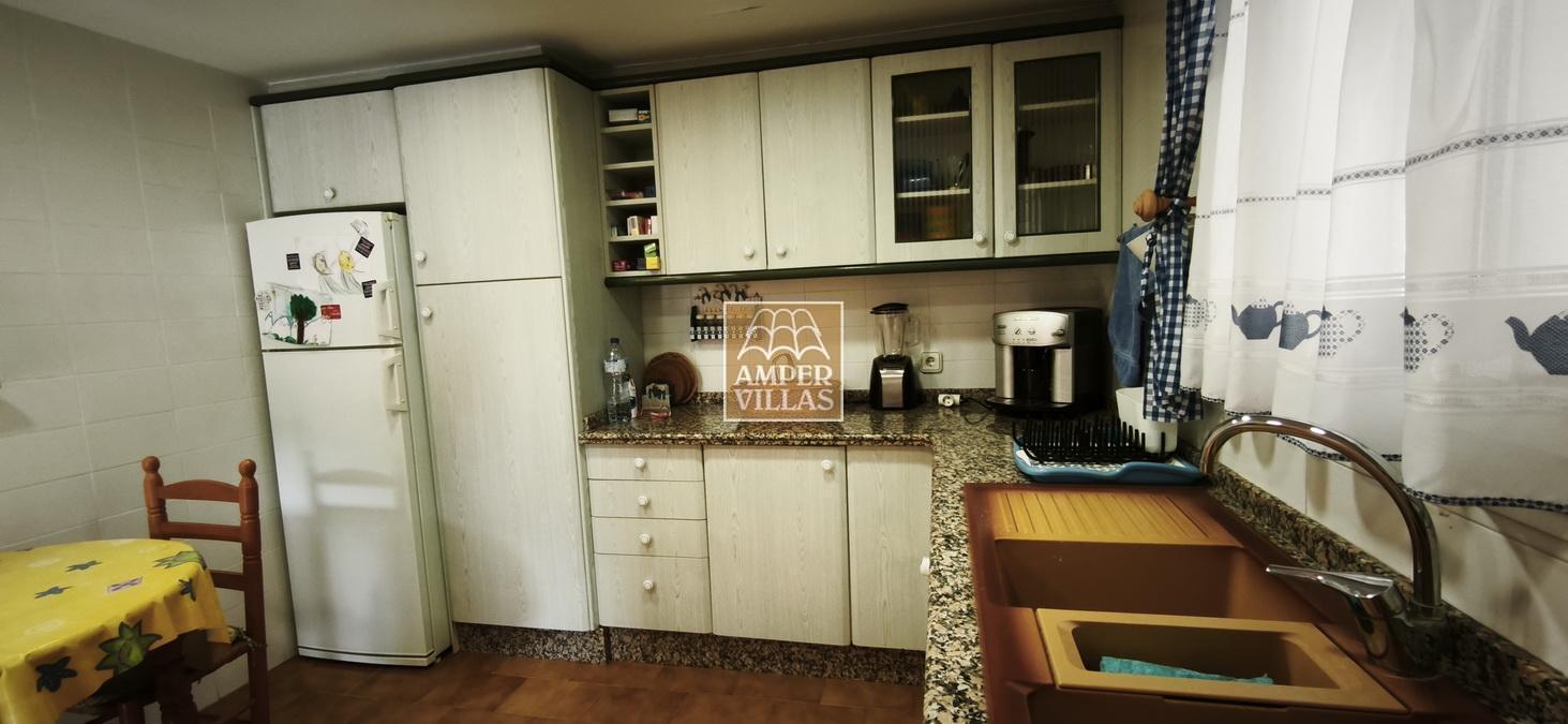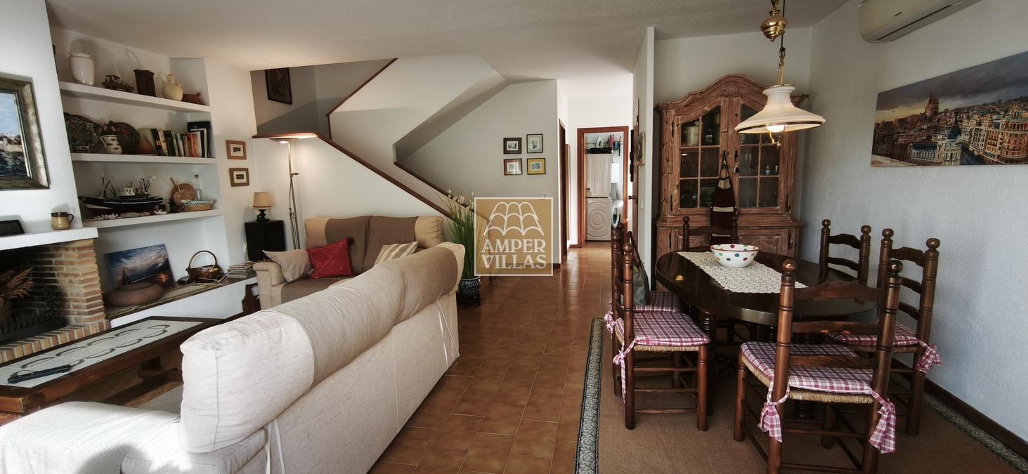 A cosy and spacious corner bungalow, close to the golf club, featuring an entrance hall, a living-dining room opening onto a terrace with lovely views of the greenery, the swimming pool and Altea Bay, a separate kitchen, a guest toilet and a separate utility room. On the ground floor there are 2 bedrooms, 2 bathrooms and a further storage room. On the upper floor there is a sun terrace. The property has hot/cold air conditioning and a fireplace. There is a parking space in front of the house, a communal swimming pool and a tennis court.
