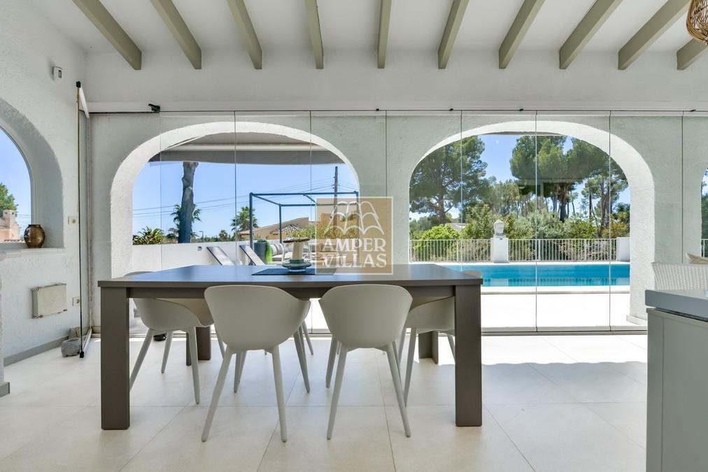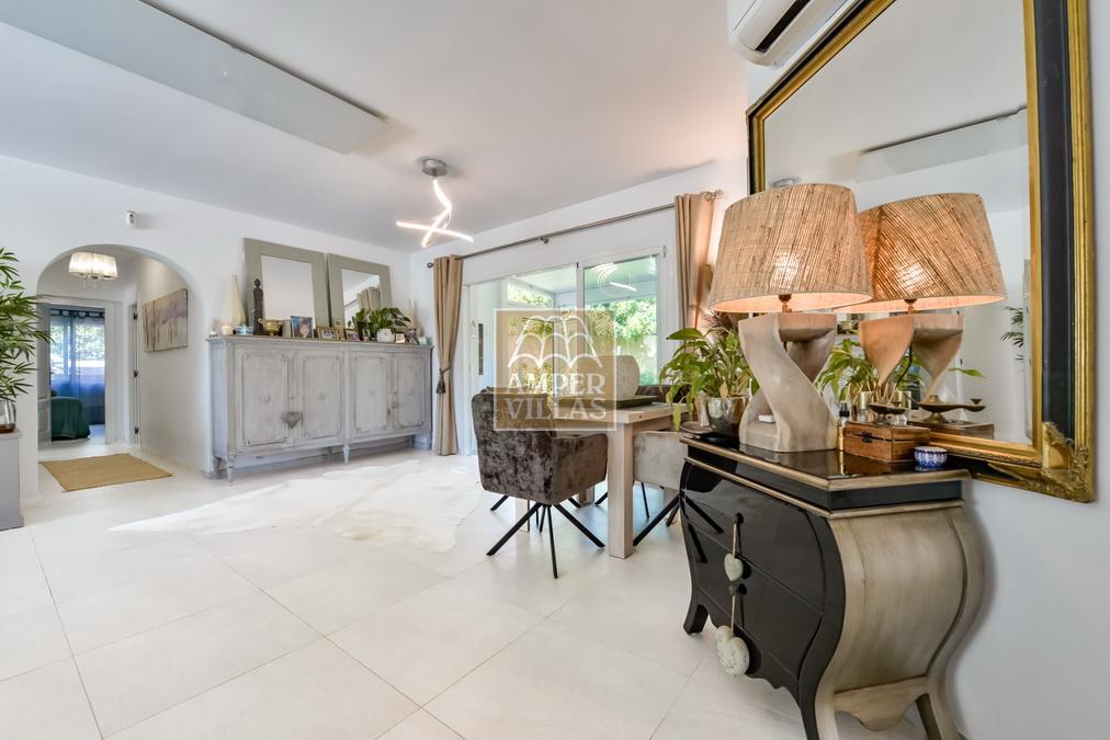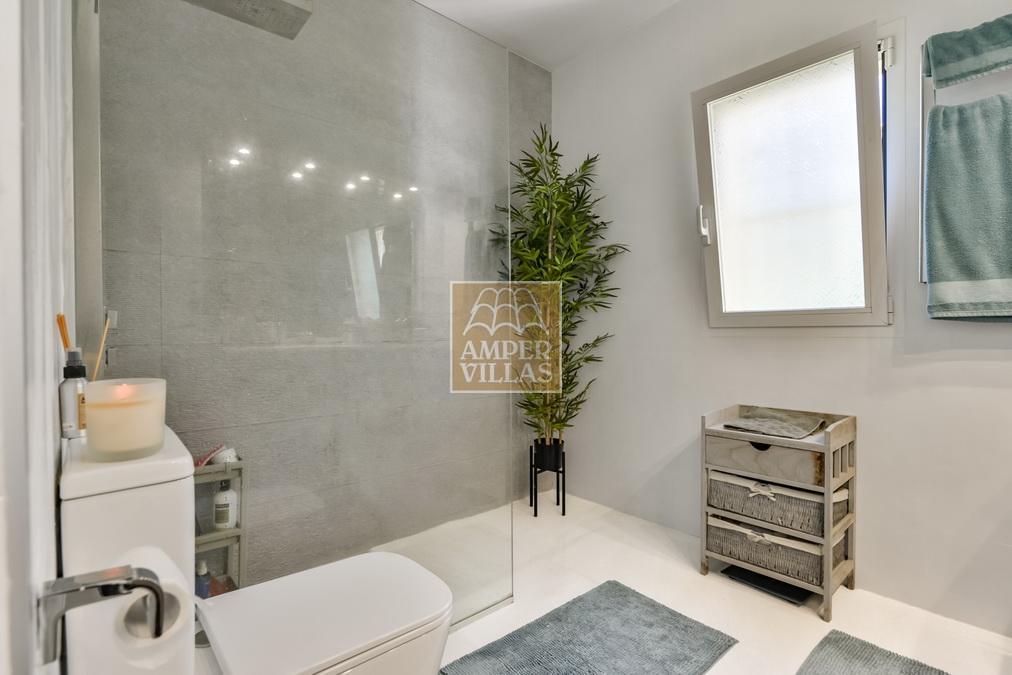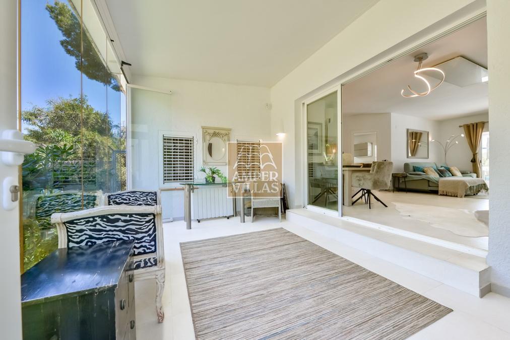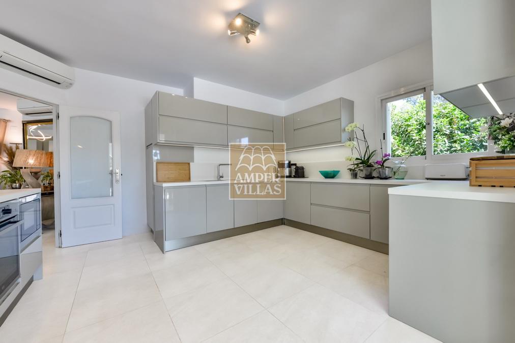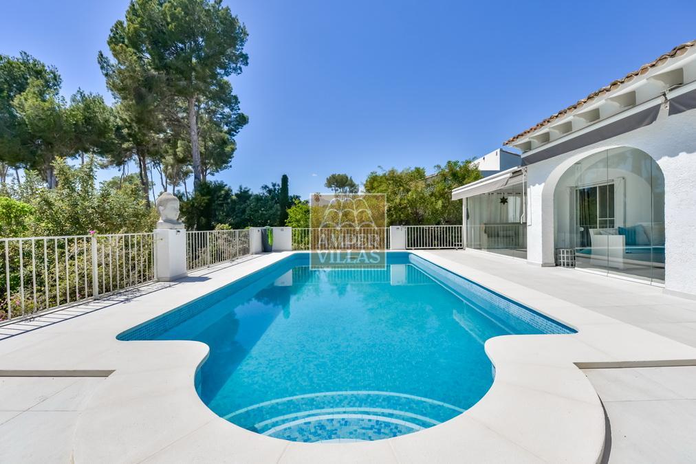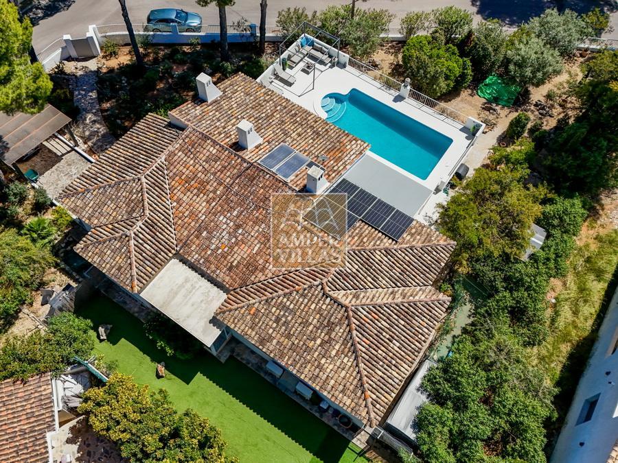 A fantastic villa in a peaceful, green setting, all on one level, featuring an entrance hall, a large living-dining room with a fireplace, and a beautiful separate kitchen, both opening directly onto the covered terrace. There are four bedrooms, each with an en-suite bathroom, and the master bedroom also opens directly onto the covered terrace. There is a glazed covered terrace at the front, leading onto the swimming pool, which is surrounded by open terraces. Another glazed covered terrace at the rear of the house. Hot and cold air conditioning, carport, south-facing.