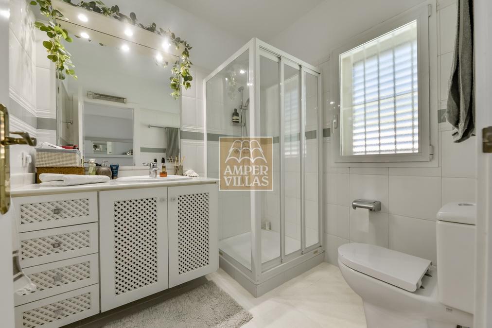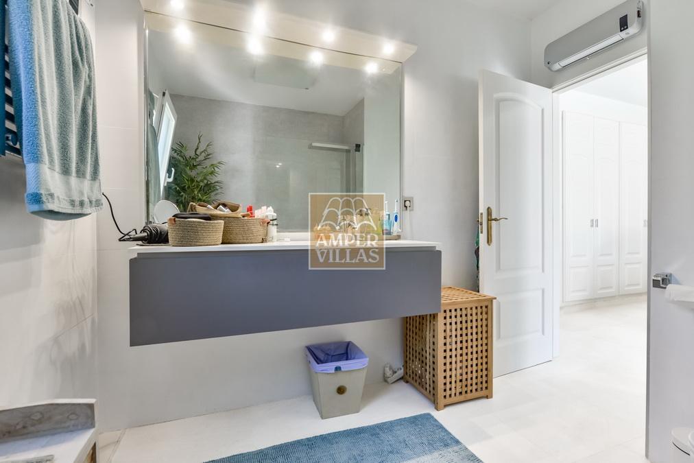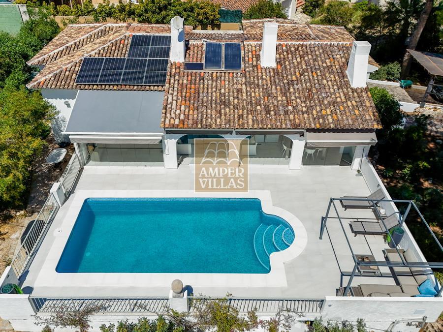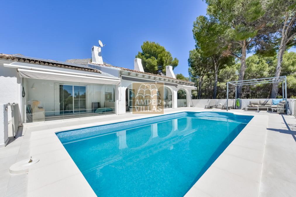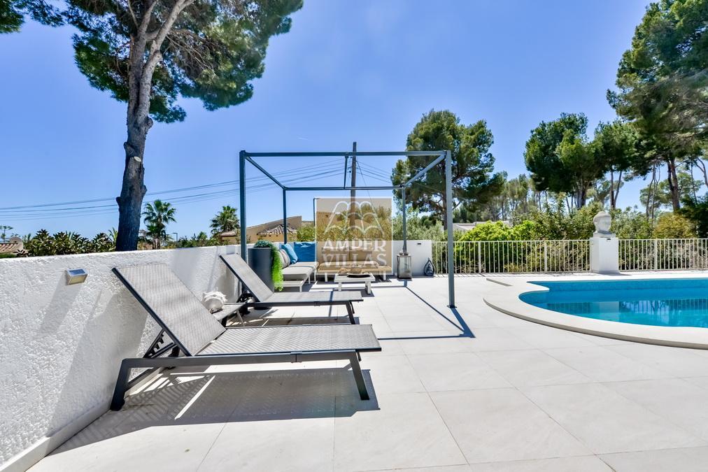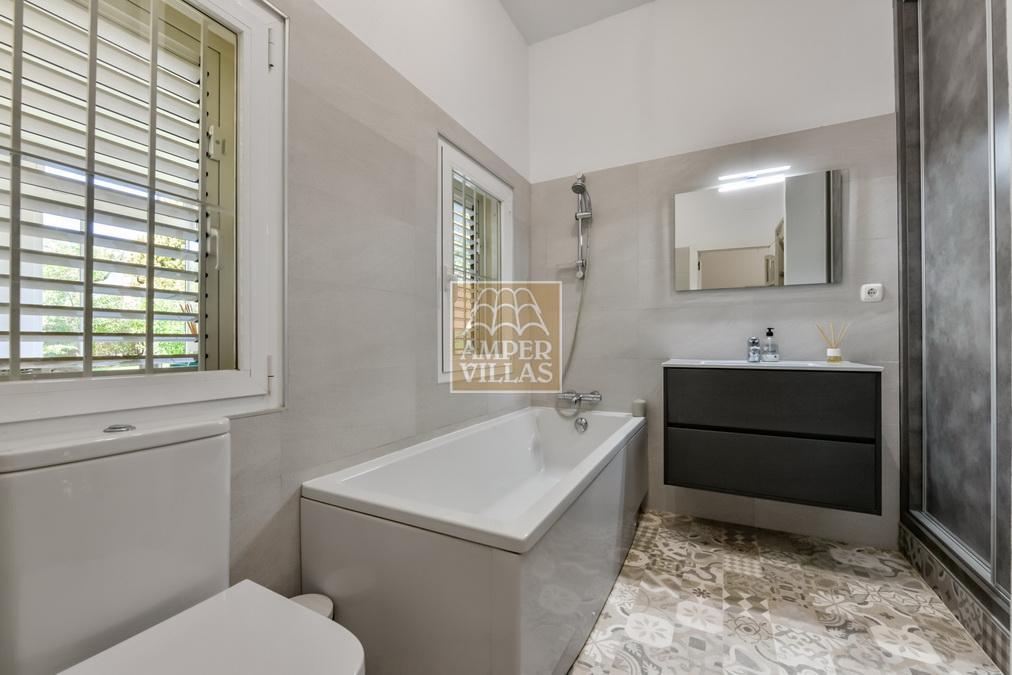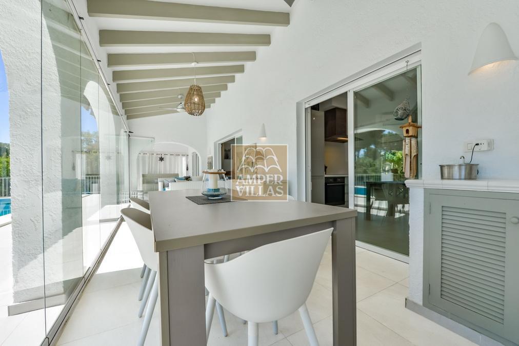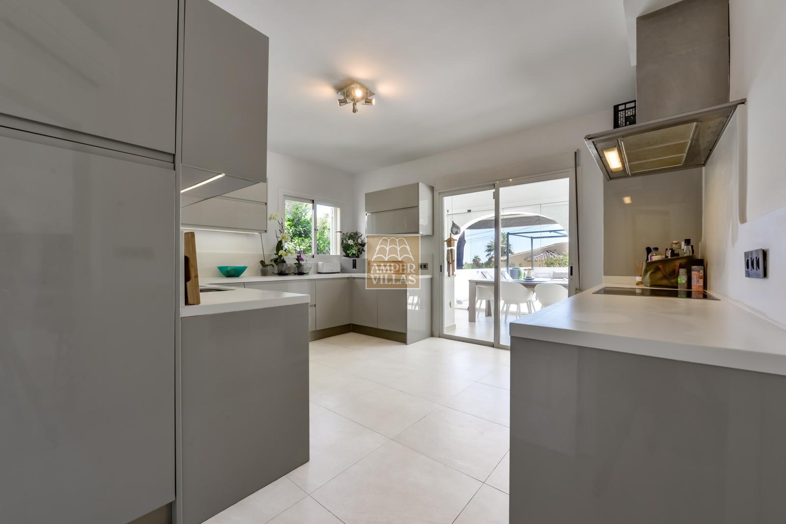 A fantastic villa in a peaceful, green setting, all on one level, featuring an entrance hall, a large living-dining room with a fireplace, and a beautiful separate kitchen, both opening directly onto the covered terrace. There are four bedrooms, each with an en-suite bathroom, and the master bedroom also opens directly onto the covered terrace. There is a glazed covered terrace at the front, leading onto the swimming pool, which is surrounded by open terraces. Another glazed covered terrace at the rear of the house. Hot and cold air conditioning, carport, south-facing.